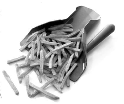 Posez là simplement dans la gouttière inclinée. D'un seul geste et sans efforts, appuyez sur le manche, et vos frites seront prêtes.