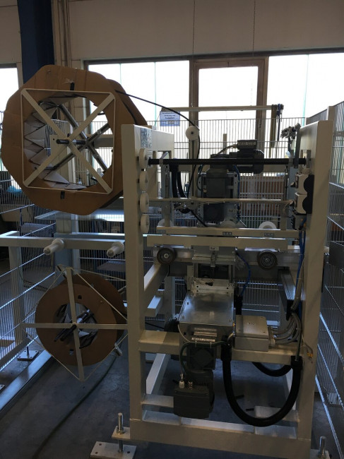 Machine pour la pose automatique et simultané du joint vitrage et joint de frappe dans les profilés de portes et fenêtres en pvc, aluminium ou bois. La machine peut être équipée de plusieurs têtes pour le traitement de différents types de joints. Les réglages s'effectuent automatiquement après la saisie du type de profil sur le panneau de commande de la machine. Le caoutchouc est enroulé de manière à ce qu'il y ait toujours suffisamment d'étanchéité dans les rainures. A la fin du profilé, les joints sont coupés automatiquement. Les profilés finis sont ensuite exécutés sur un convoyeur à rouleaux ou une table de sortie.