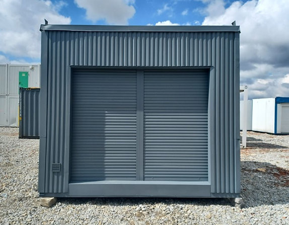 Conteneur commercial 300×350 avec volets roulants avant split + porte arrière