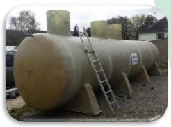 o Volume 16,6 m3 / Ø 2 200 mm / Longueur 5 000 mm / Øregard 250 mm / Ø raccords 620 mm.