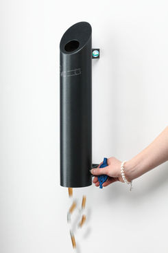 - Vidange pratique par clapetà la base (enlever capuchon, ouverture avec clé – les mégots tombent vers le bas).