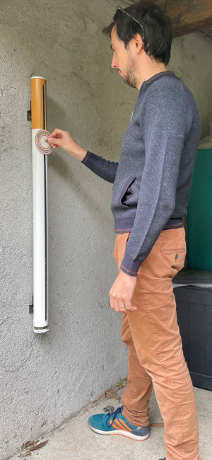 Remplissage : Par le haut du cendrier. Les mégots tombent dans un tube en polycarbonate (classe au feu M1 : résistant au feu, ininflammable, forte résistance mécanique).
