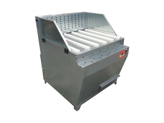 La poussière est filtrée grâce à des cartouches polyester aluminisées puis est récupéré dans un tiroir situé en partie basse de la table. Le décolmatation des filtres est réalisé par une surpression intérieure d'air comprimé.