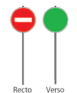 Ce panneau de signalisation comporte deux faces sur lesquelles figurent un sens interdit d'un côté et un cercle vert de l'autre.