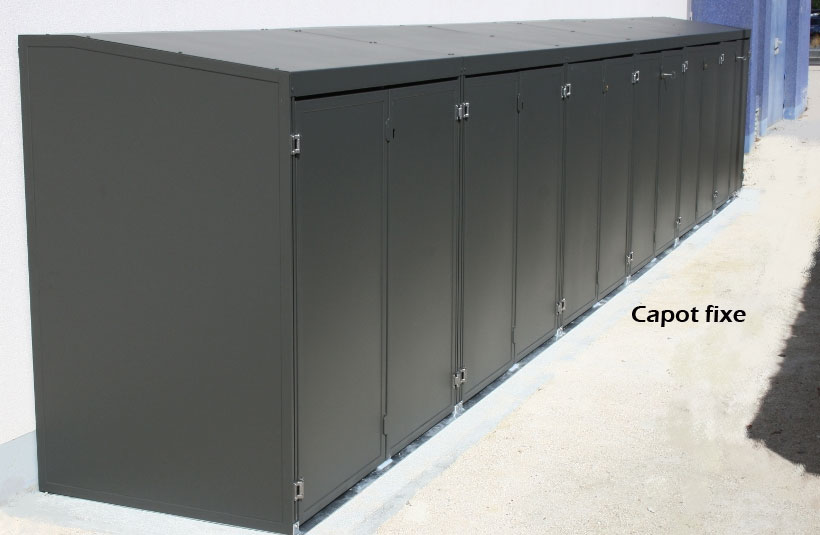 J"aimerais recevoir un devis pour la protection de 5 bacs à poubelle 770L , 4 pour ordures ménagères et un bac de tri. Les 5 poubelles en enfilade avec trappes d"accès sur le dessus, et possibilité de verrouillage pour la trappe du bac de tri.