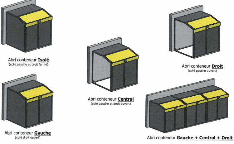 j"aurais besoin d"un/plusieurs abri(s) pouvant recevoir 2 conteneur de 770 L ou 5/6 conteneur individuel.