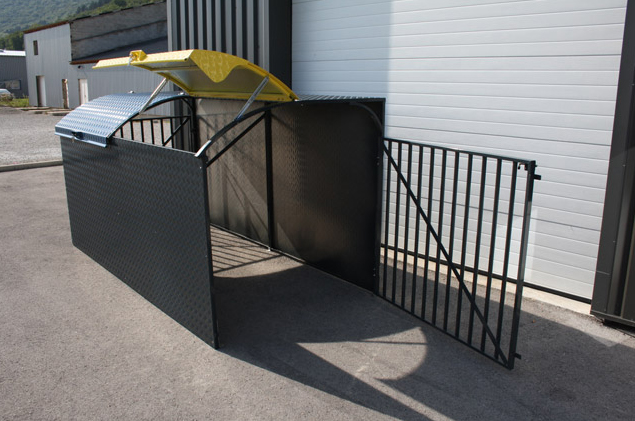 1 Abri conteneur isolé 2 côtés fermés avec capot trappe pour deux conteneurs.