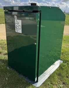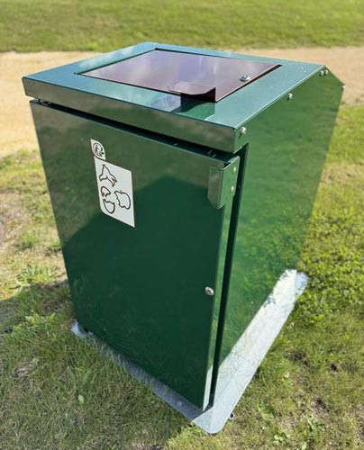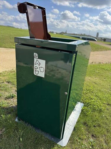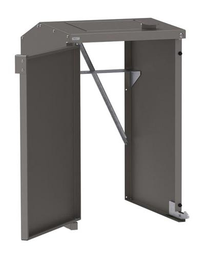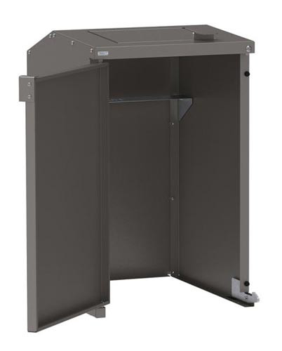 Le système d’ouverture à porte battante est équipé d'un verrouillage par clé triangle pour assurer la sécurité des poubelles.