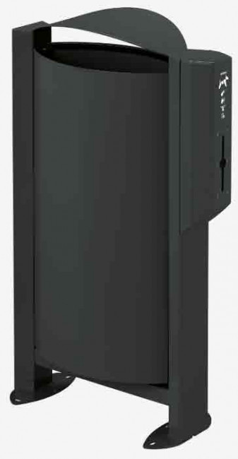 corbeille sur pied 60L avec son distributeur sac hygiène canine pour garder vos espaces propres.