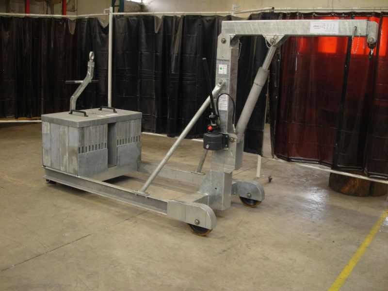 *Grue d"atelier sur roues pour soulever des moteurs.