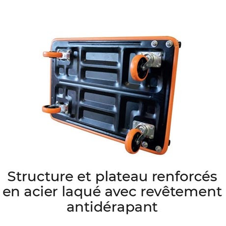 Pour stabiliser vos charges lors de son usage, sa plateforme est couverte d’un revêtement antidérapant, extrêmement compact.