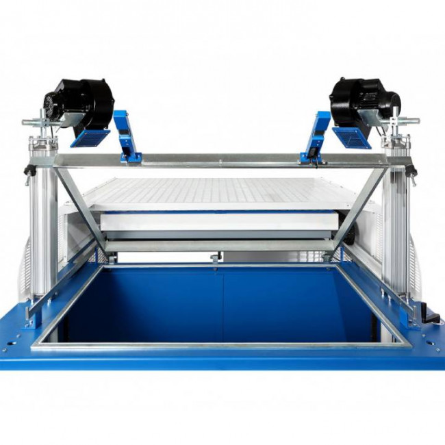 Sa table pneumatique facilite le positionnement du moule.