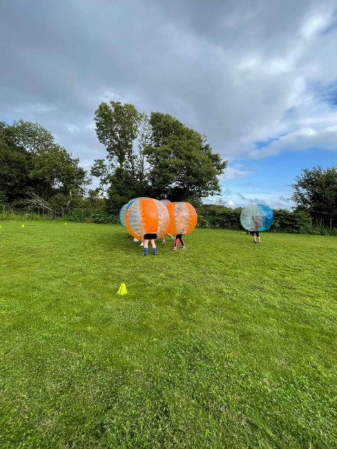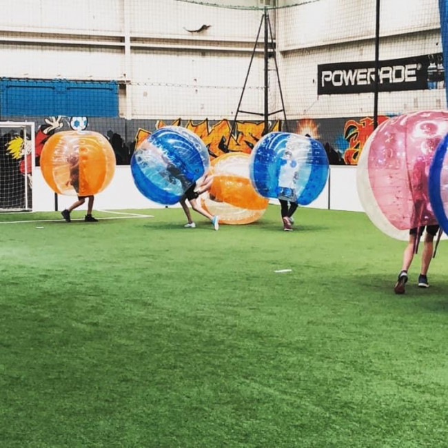 Il permet de jouer au foot dans de grosses bulles gonflables.