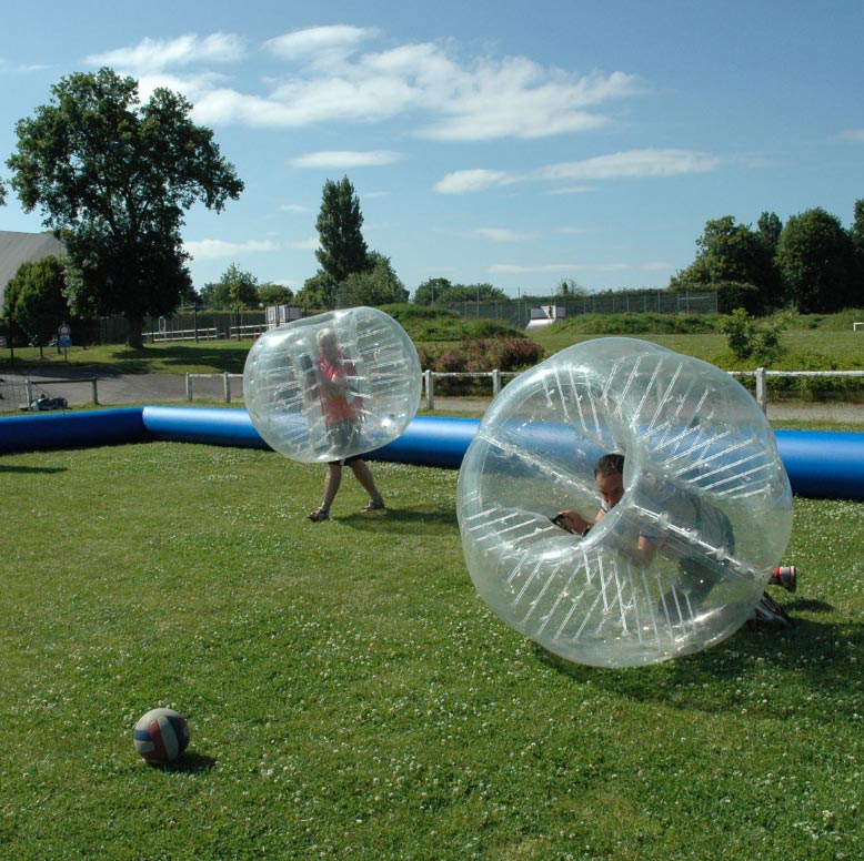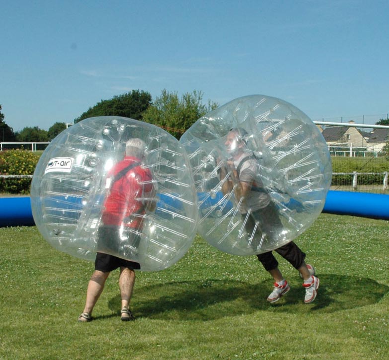 Le bubble foot est un loisir sportif où chaque joueur se trouve à l'intérieur d'une bulle gonflable.