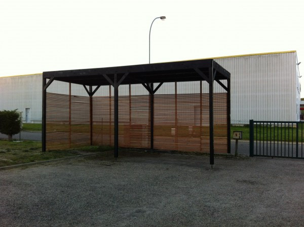 bonjour devis et différents modèles pour abri camping car bois déjà traité ou acier L 7 m, l 2.33 m, h 2.96 m, toit acier une pente merci