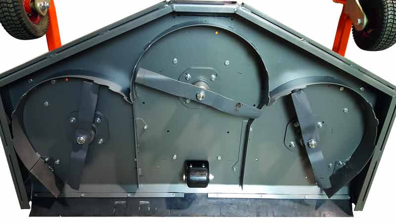 La forme du carter et les contre-lames plates permettent de tondre l'herbe en très fines particules, évitant ainsi d'avoir à la ramasser.