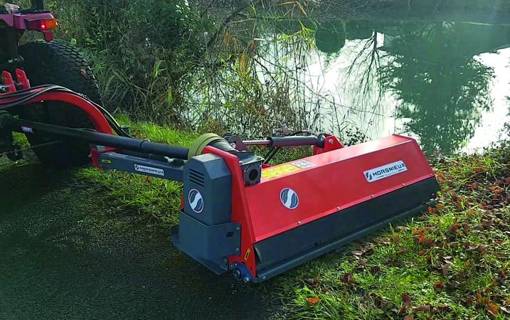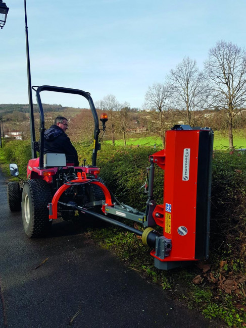Ce broyeur d'accotement avec système hydraulique de déport et d’inclinaison s’adapte aux tracteurs de 20 à 40 CV.