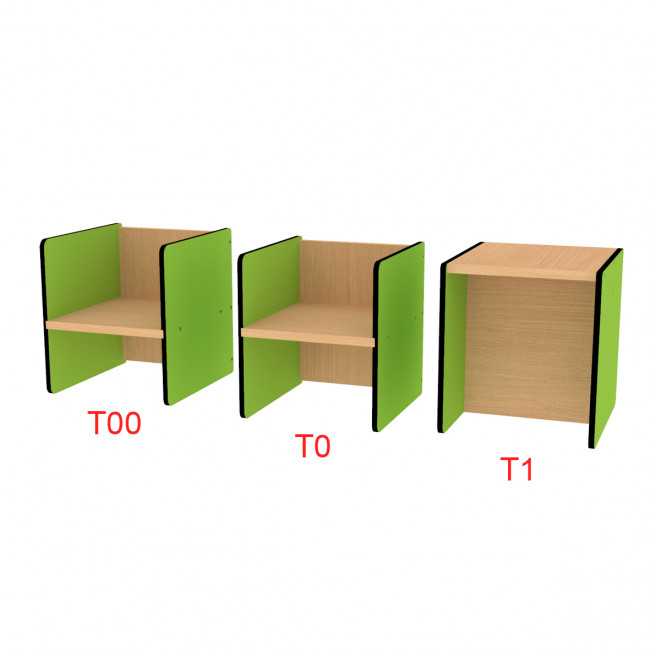 - Une chaise avec 3 hauteurs d’assise par un simple retournement. Passez en un geste de la taille T00 à T0 ou T1