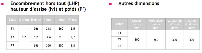 Taille 2 : Hauteur d'assise 310mm - Dimensions 314 x 336 x 616mm