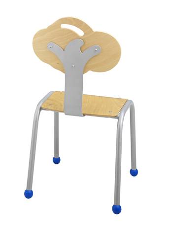 La lame support de dossier en tôle de 4mm d'épaisseur présente une forme à la fois ergonomique et décorative, parfaitement adaptée à la morphologie des jeunes enfants.
