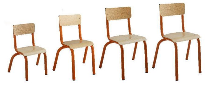 Notre chaise RAJA maternelle se décline en 4 tailles parfaitement adaptées aux différents âges :