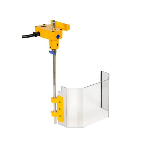 - Cache de protection pour perceuse constitué d'un écran angulaire en polycarbonate résistant aux chocs et aux rayures, monté sur un support muni d'un interrupteur de sécurité
