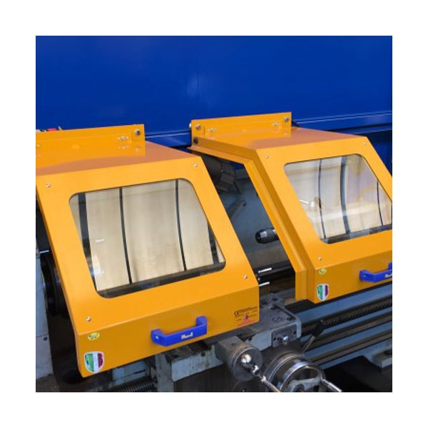 - Double capot de protection constitué d'un cadre en acier rempli de verre de sécurité