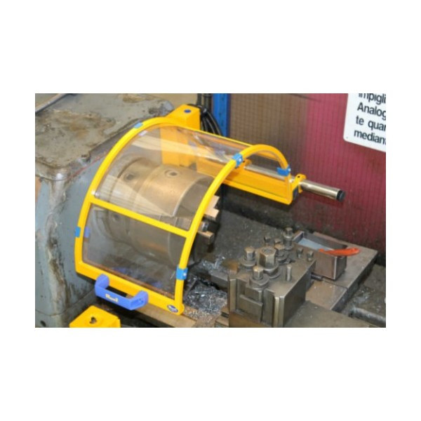 - Protection pour mandrin de tour avec écran en polycarbonate, cadre en acier et micro-interrupteur de sécurité