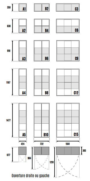 Nuancier RAL (A préciser lors de la commande) Définissez les couleurs du cadre, du coffre et des portillons