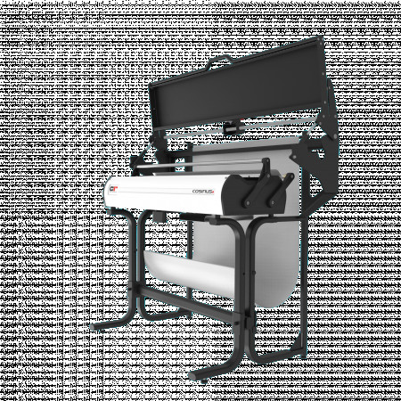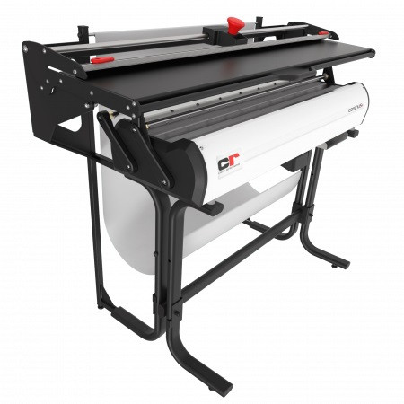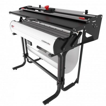 Cette plieuse et coupeuse de plans Cosinus vous permet de couper les bords de votre plan, puis, en relevant la coupeuse, de le plier au format A4.