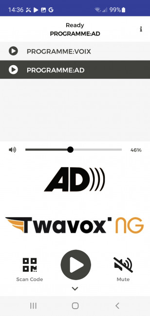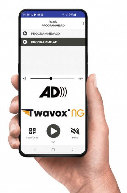 L'application via votre tablette et votre smartphone permet d'accéder aux fonctions : bouton sous-titres pour les malentendants, bouton renforcement sonore pour les malentendants et bouton audio description pour les malvoyants.