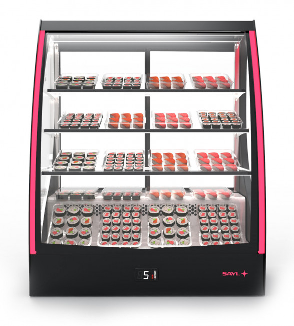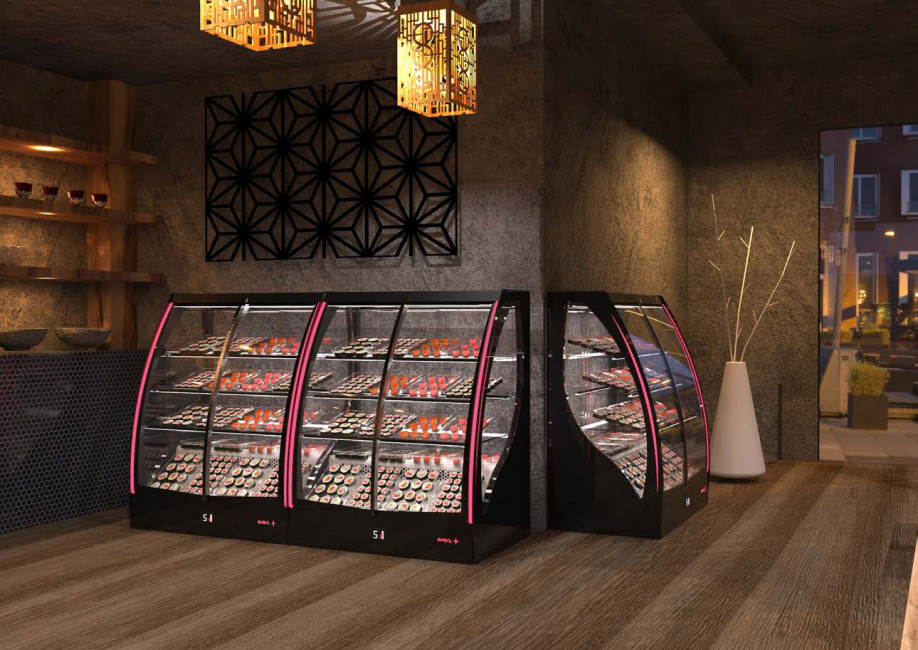 Cette vitrine à sushi réfrigérée combine parfaitement esthétique moderne et performance technique pour sublimer vos créations culinaires.