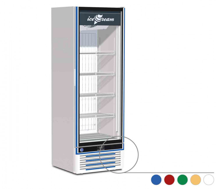 Cette vitrine réfrigérée négative d’une capacité de 410 L est conçue pour exposer des produits surgelés (glaces, macaron…).