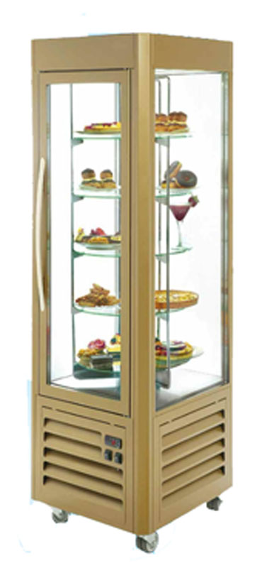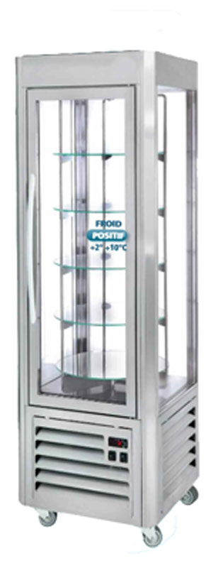2 versions au choix : Display : Vitrine fixe à 5 niveaux (clayettes réglables). Carrousel : Vitrine rotative à 5 niveaux