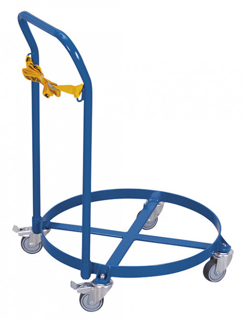 Simplifiez et sécurisez vos opérations de manutention avec notre chariot porte-fûts avec barre de poussée, conçu pour transporter facilement des fûts en acier de 200 litres jusqu’à 250 kg.
