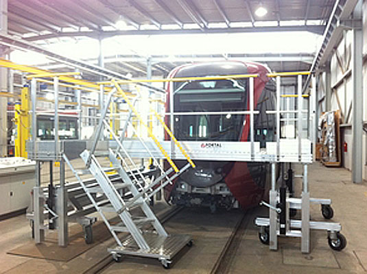 Adaptable et robuste, cette plateforme offre un accès simplifié au nez des motrices, aux wagons et aux toitures des rames.