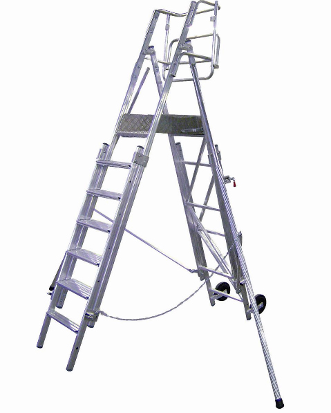 Cette plateforme sécurisée dispose de marches aluminium antidérapantes, avec une profondeur de 80 mm, renforcées par un barreau carré de 25 mm.