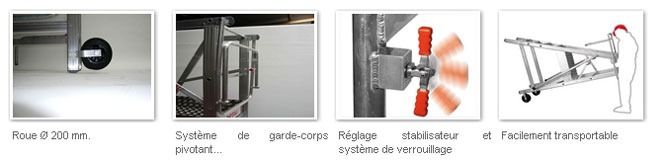 Elle est disponible en versions de 2 à 10 marches, desservant des hauteurs de travail comprises entre 2,47 et 4,33 mètres.