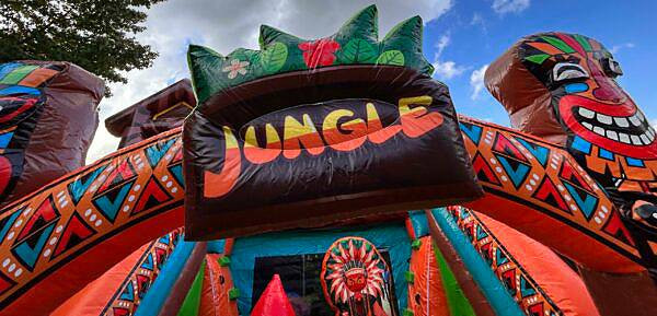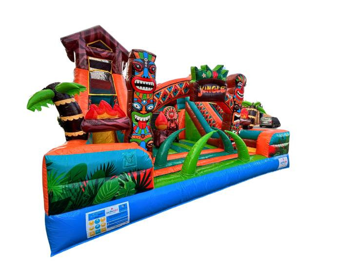 Ce parc de jeux gonflables transforme votre événement en véritable aventure tropicale, pensée pour capter l’attention des enfants et faciliter la gestion des participants.
