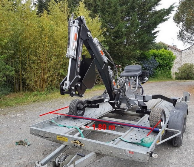 D’une mini pelle araignée avec tous ses accessoires au complet + le transport.