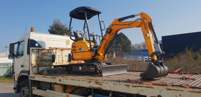 Voici une minipelle 2t capable de vous accompagner dans des travaux de terrassement impressionnant. La minipelle à chenilles RHINOCEROS XN20 (2tonnes) est équipée de série de voie rétractable qui lui confère en position élargie une meilleure stabilité, le pied de flèche orientable vous permet un travail plus facile le long des murs. Elle possède également une ligne hydraulique auxiliaire qui lui permet l’utilisation de différents accessoires.