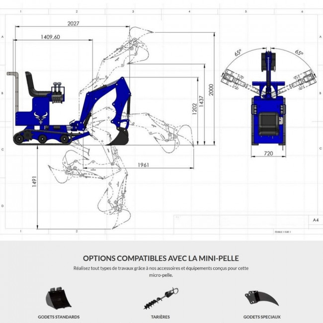 Micro-pelle conçue et fabriquée en France, 3 configurations possibles, thermique, électrique et hybride.