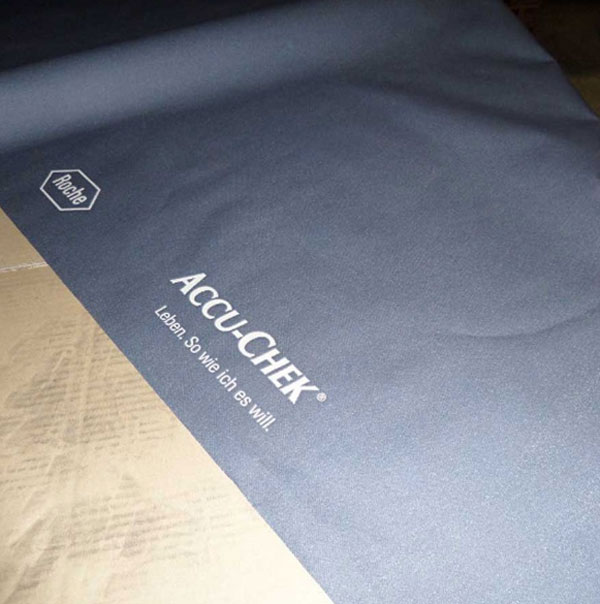 Rouleau de 50m de banderole in tissée avec impression en quadrichromie d"un logo