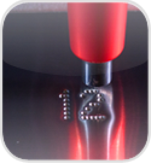 Le principe est basé sur un marquage en creux de la matière, grâce à une pointe vibrante.