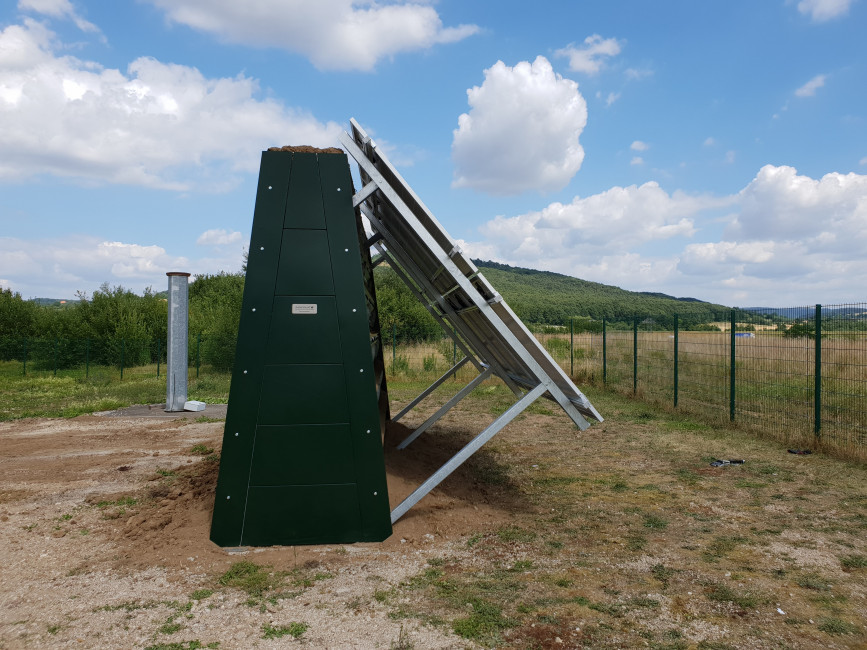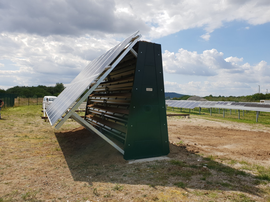 Réalisée sur mesure, cette ossature supporte à la fois les plantes et les panneaux solaires.