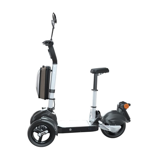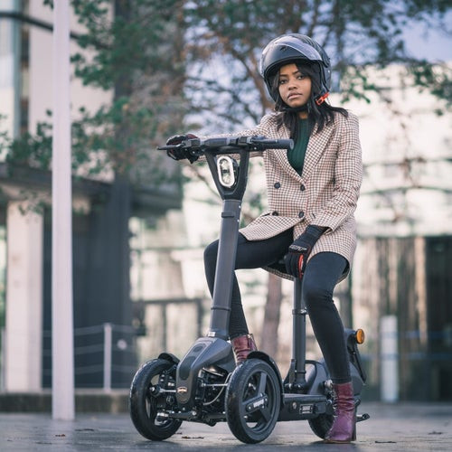 Ce mini scooter électrique à 3 roues pliables est un modèle hybride entre la trottinette et le scooter qui permet une bonne mobilité urbaine.