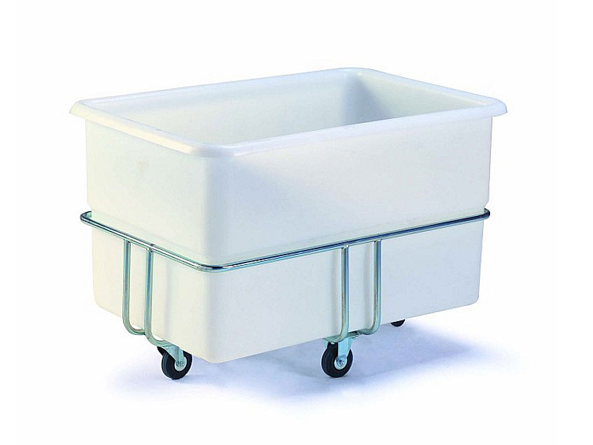 Ce chariot à linge en polyéthylène est conçu pour le transport du linge essoré ou mouillé.