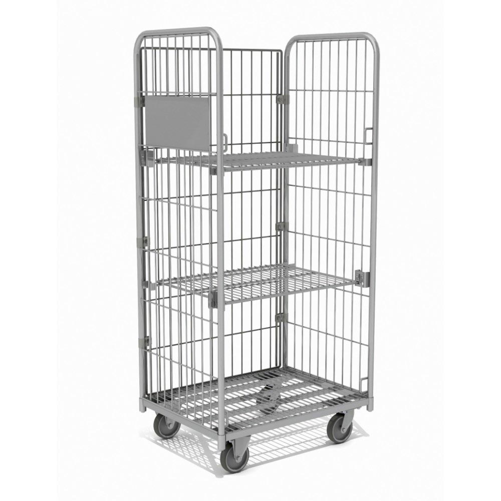 Chariot roll 3 côtés 800 x 600 Est-ce que les deux 2 étagères rabattables sont fixés en hauteur ou amovible? Si fixé est-ce que un option pour avoir 2 étagères amovible? Cordialement M Kerslake