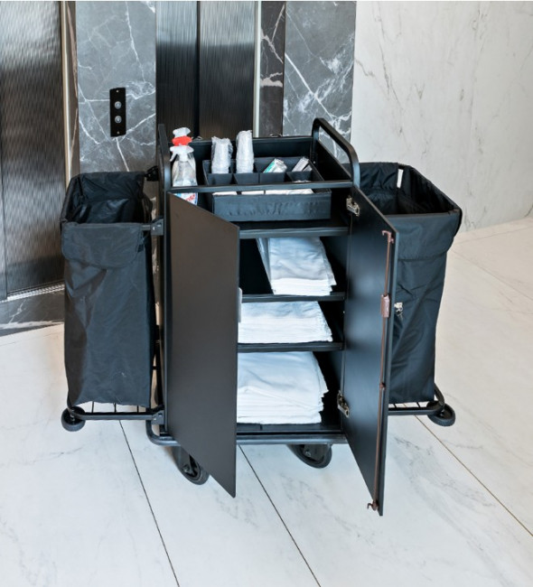 Chariot de service conçu pour faciliter la manipulation du linge et pour maintenir son hygiène et sa propreté.