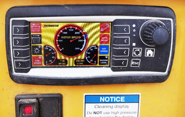 Le régulateur de vitesse électronique DURATECH protège la machine et le tracteur en maintenant une sollicitation régulière du tracteur et de la transmission tout en ajustant le nombre de tours/min du bol, ce qui permet de contrôler le taux de remplissage du broyeur.